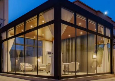 دفء الأجواء وجمال اللحظات. استمتع بأجواء الشتاء الساحرة في الهواء الطلق مع جلساتنا الشتوية المصممة لتوفير أقصى درجات الراحة والدفء. نقدم حلولاً متكاملة تجمع بين التصميم الأنيق والوظائف العملية، باستخدام مواد عازلة للبرودة ومقاومة للأمطار.سواء كنت تبحث عن ملحق فاخر لحديقتك أو مساحة إضافية لاستقبال ضيوفك، فإننا نضمن لك جلسة متكاملة ومجهزة لتكون ملاذك الشتوي المفضل.لتصميم جلستك الشتوية الحالمة، تحدث مع خبرائنا اليوم.